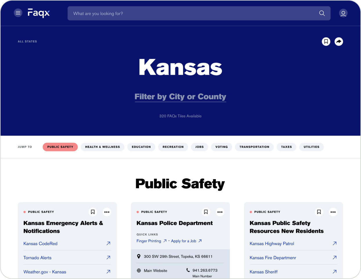 Inspired by Swiss Design, FAQx's visual language utilizes a bold typography palette and a blue-based color scheme to convey a sense of authority and credibility. Softer forms, round edges, and illustrations balance this authoritative look, enhancing the product's human nature. Color was used thoughtfully as a wayfinding element in order to guide users towards the information they seek, with the blue shade deepening as they progress, creating a funnel-like experience.